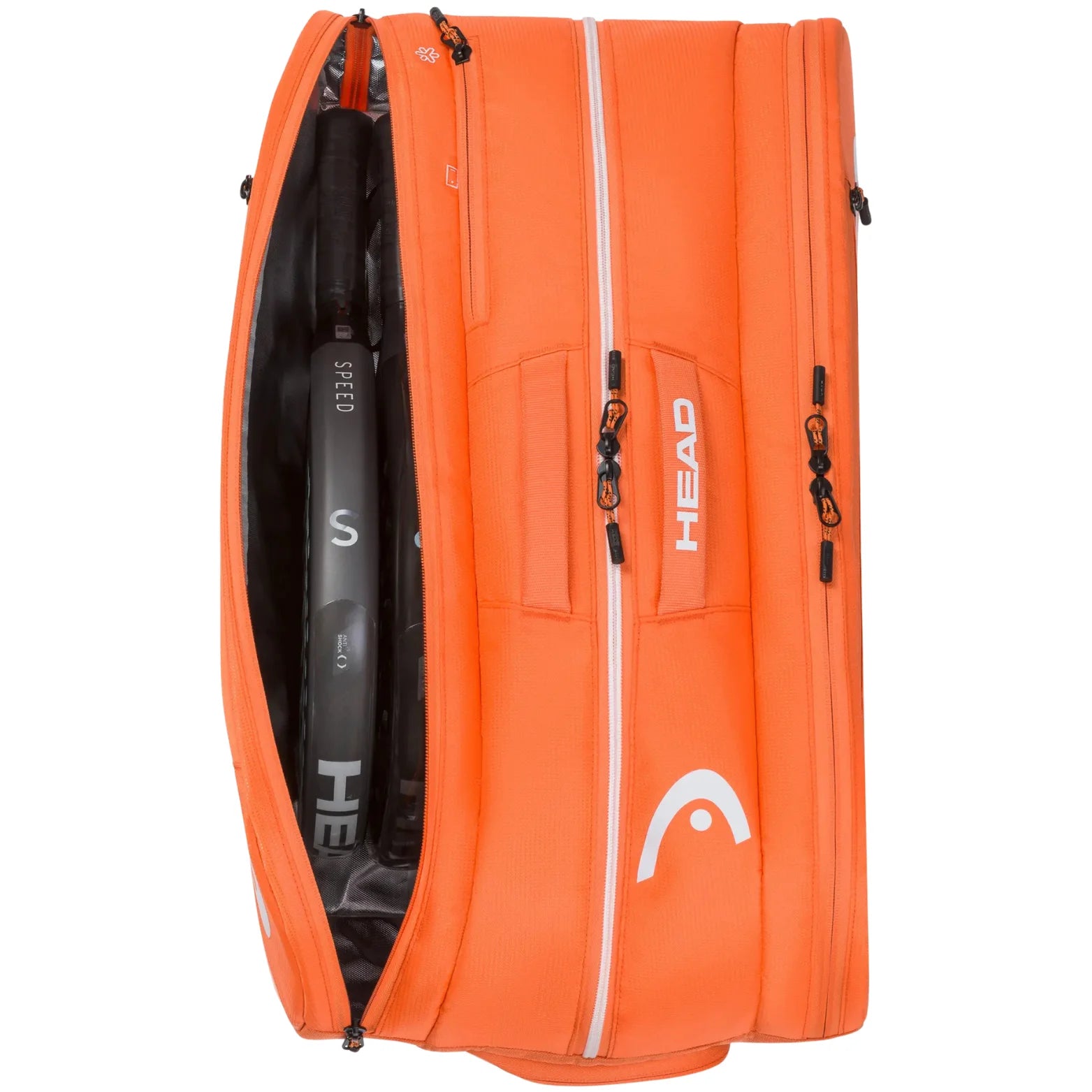 Luce moderno dentro y fuera de la pista con el nuevo paletero de padel HEAD Tour Padel Bag L, ahora con un tejido reflectante que realza su estilo deportivo y contemporáneo. Esta versión en color naranja vibrante no solo captura miradas, sino que también ofrece una funcionalidad superior y espacio optimizado para el jugador exigente.